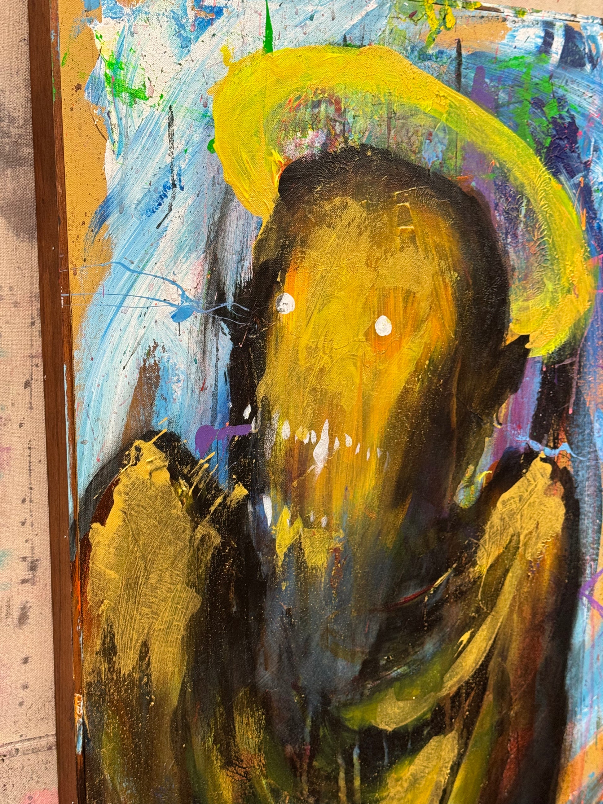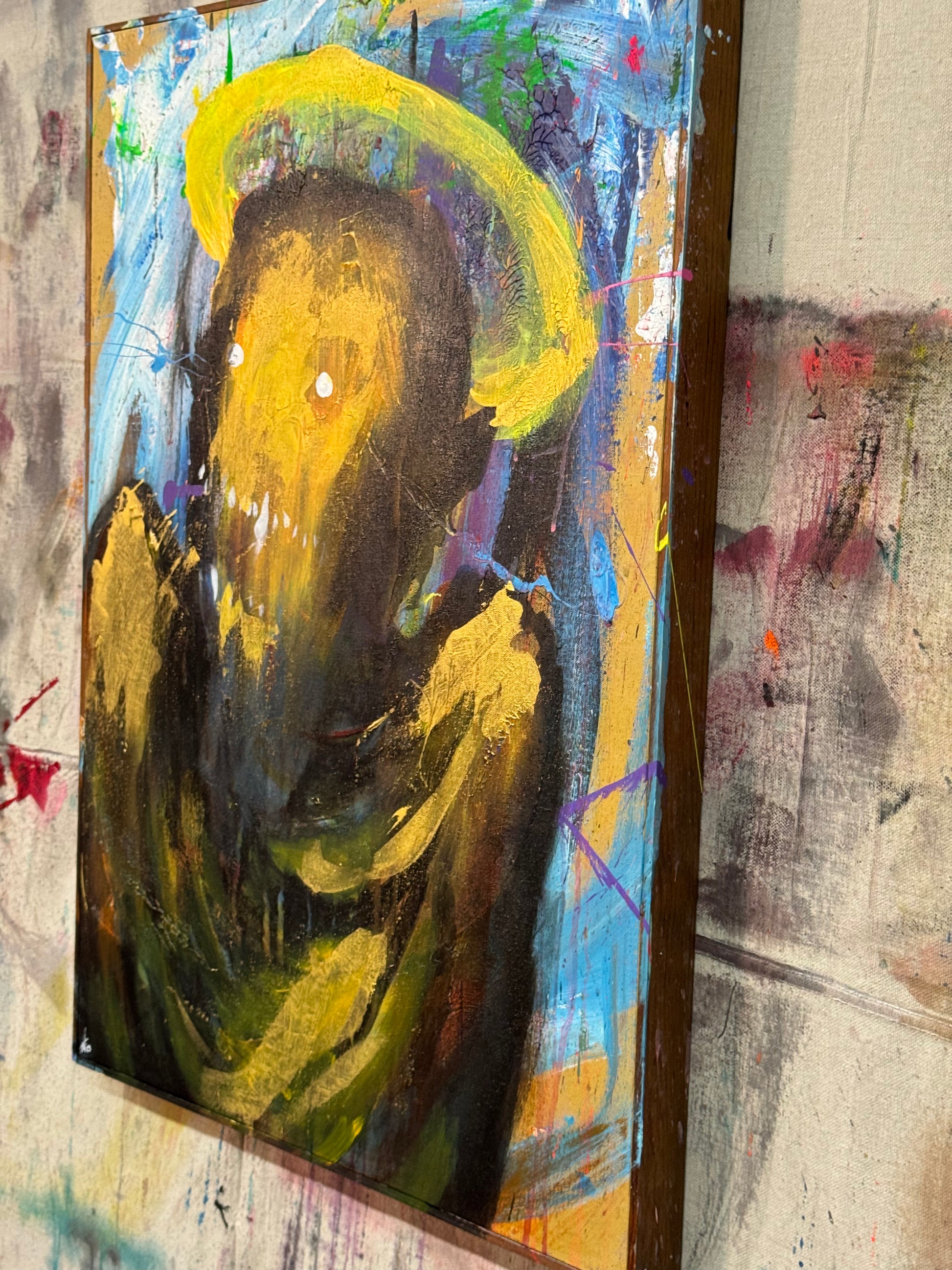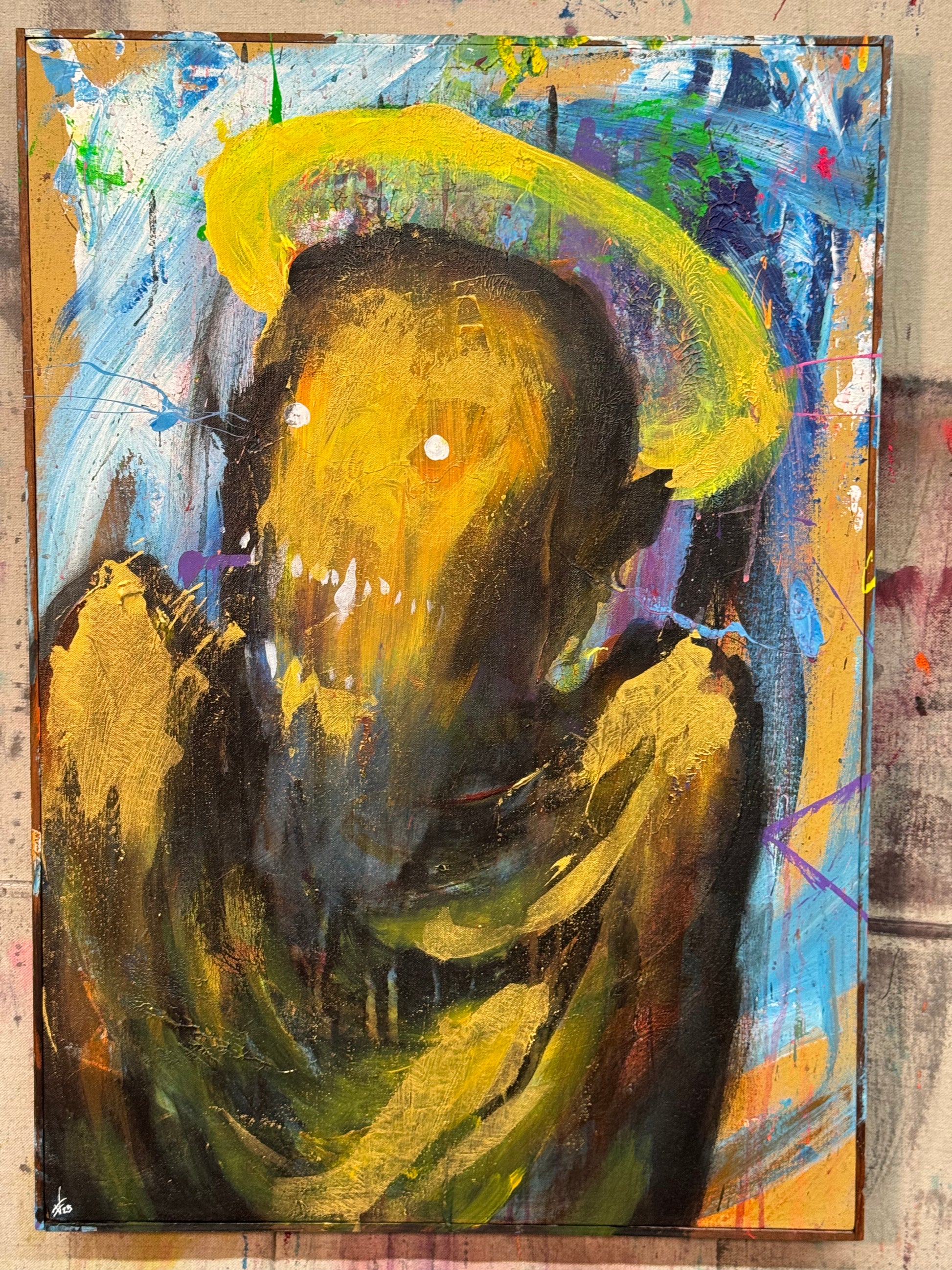 This is about not taking things as they seem, acrylic on 21x30 framed canvas.