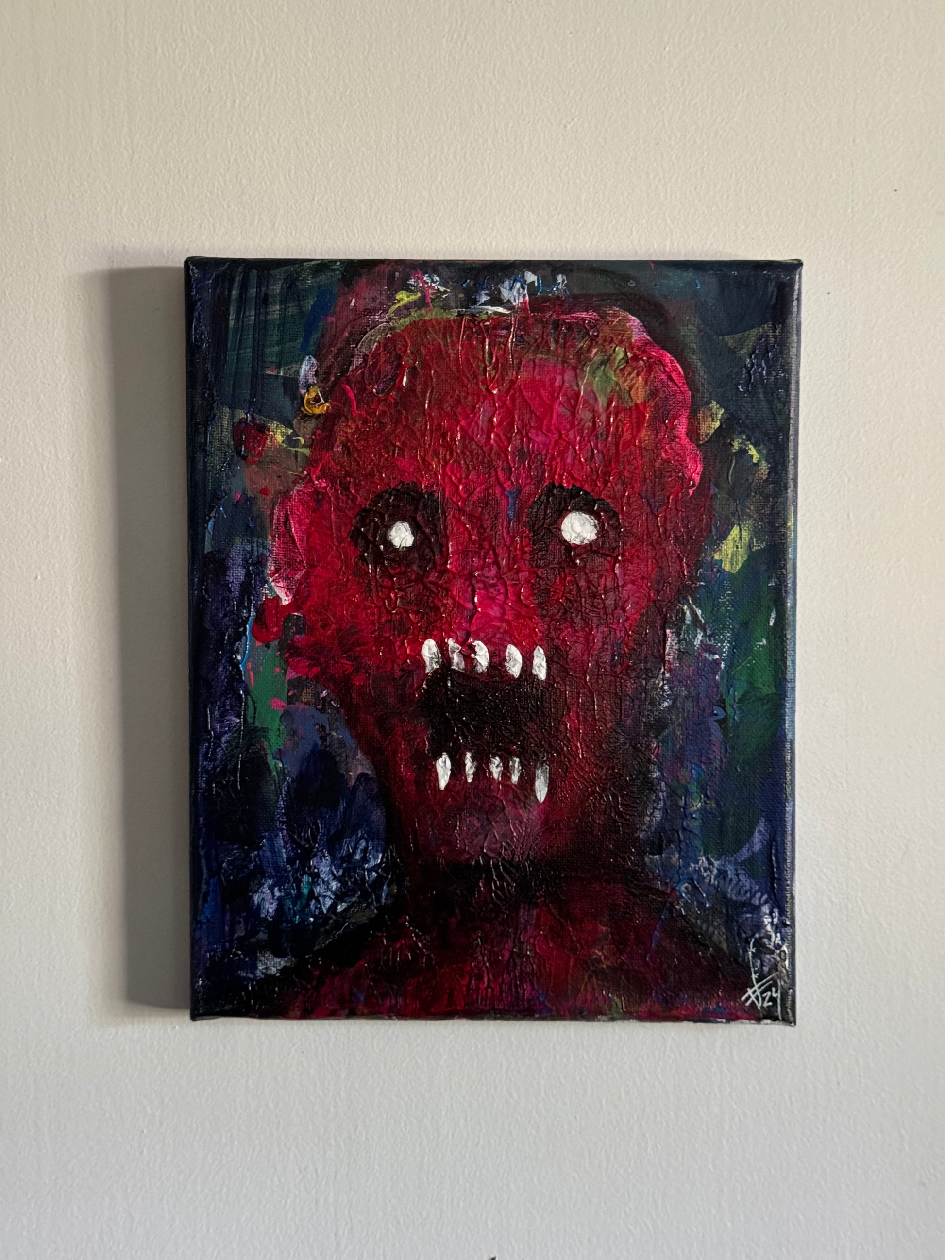 An original painting about skin peeling back kind of feeling, acrylic on 8x10 canvas panel.