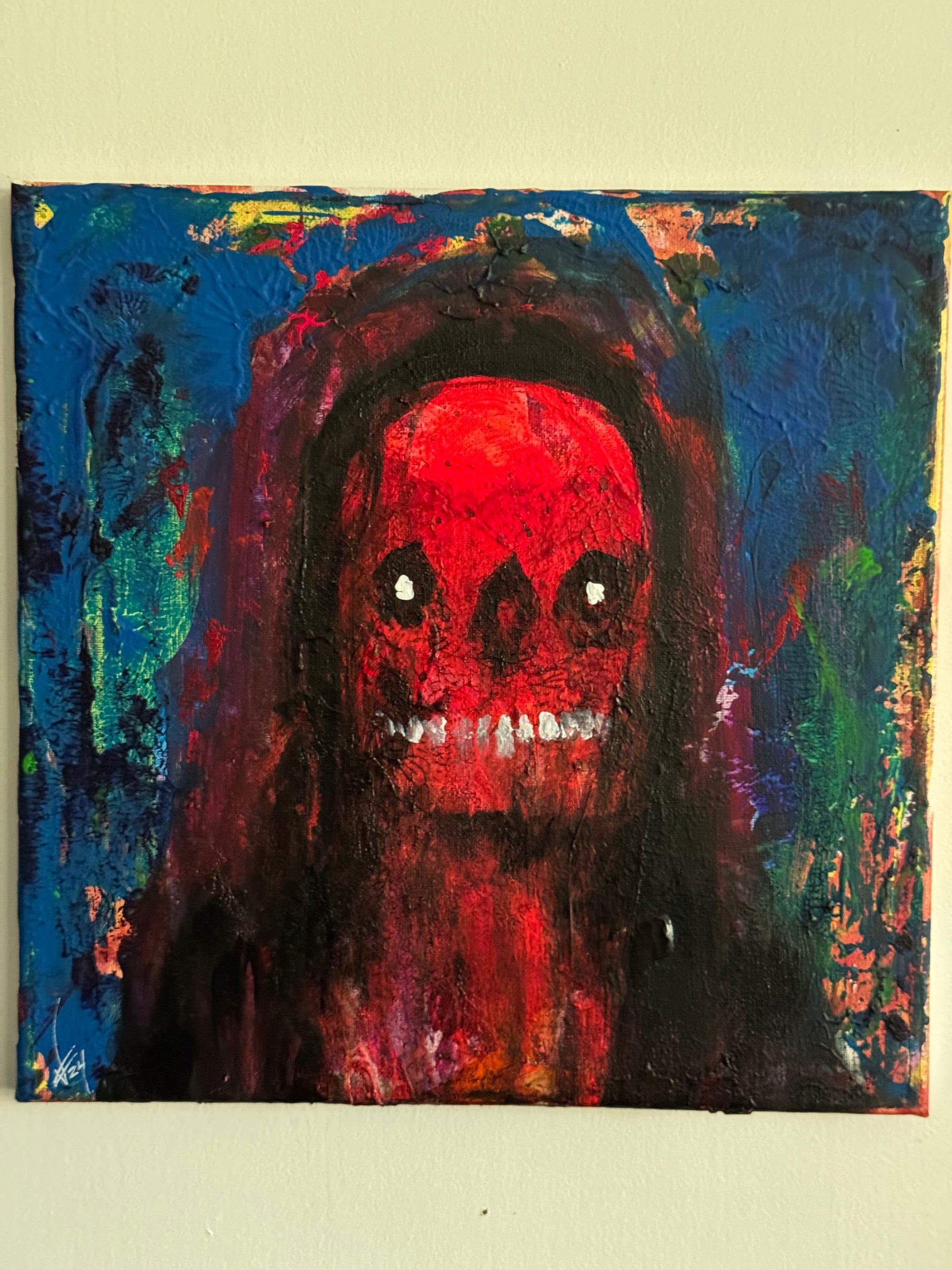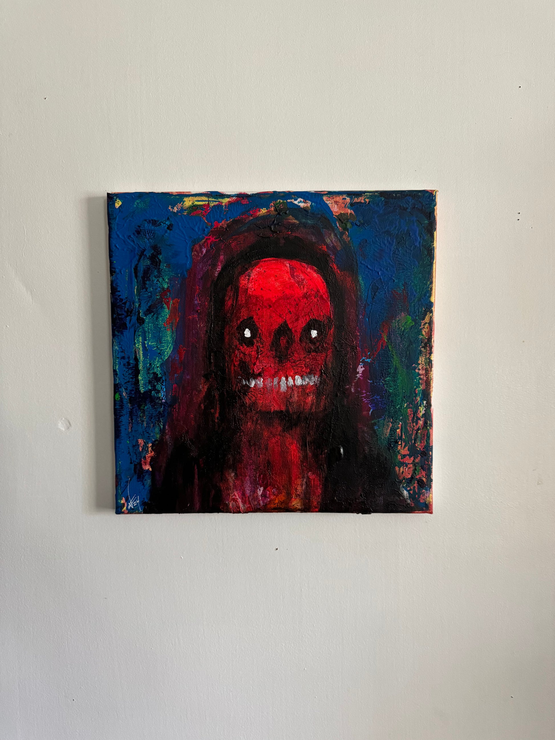 An original piece about the aura of a content person, acrylic on 12x12 canvas.