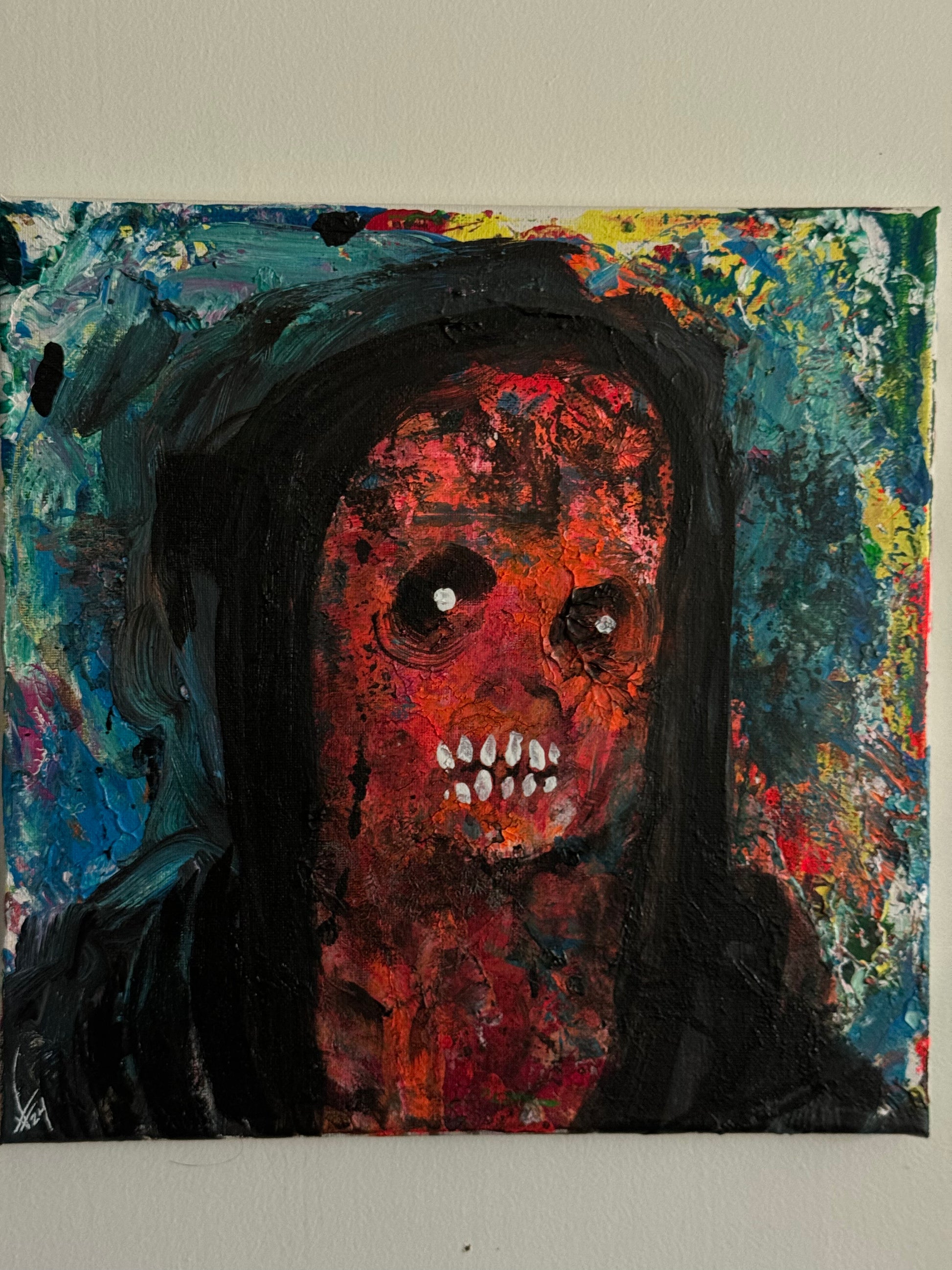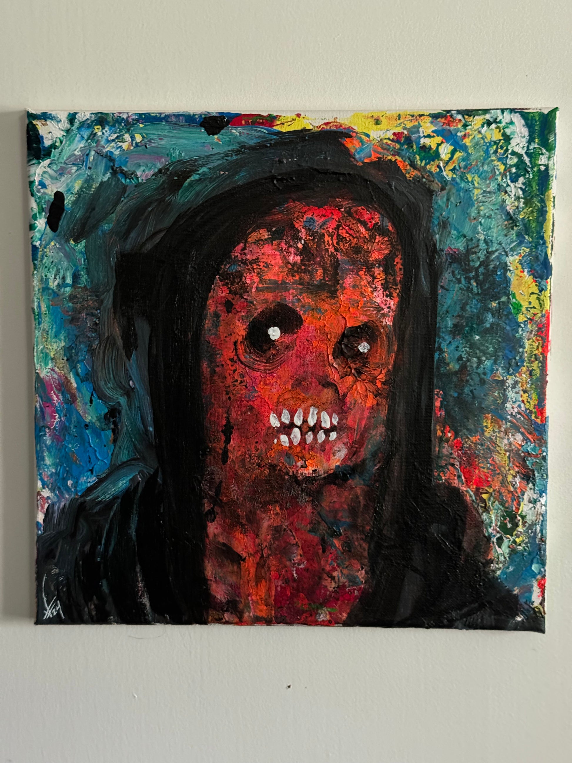 An original piece about when you're scared and your eyes do that weird thing where they feel like they're vibrating, acrylic on 12x12 canvas.