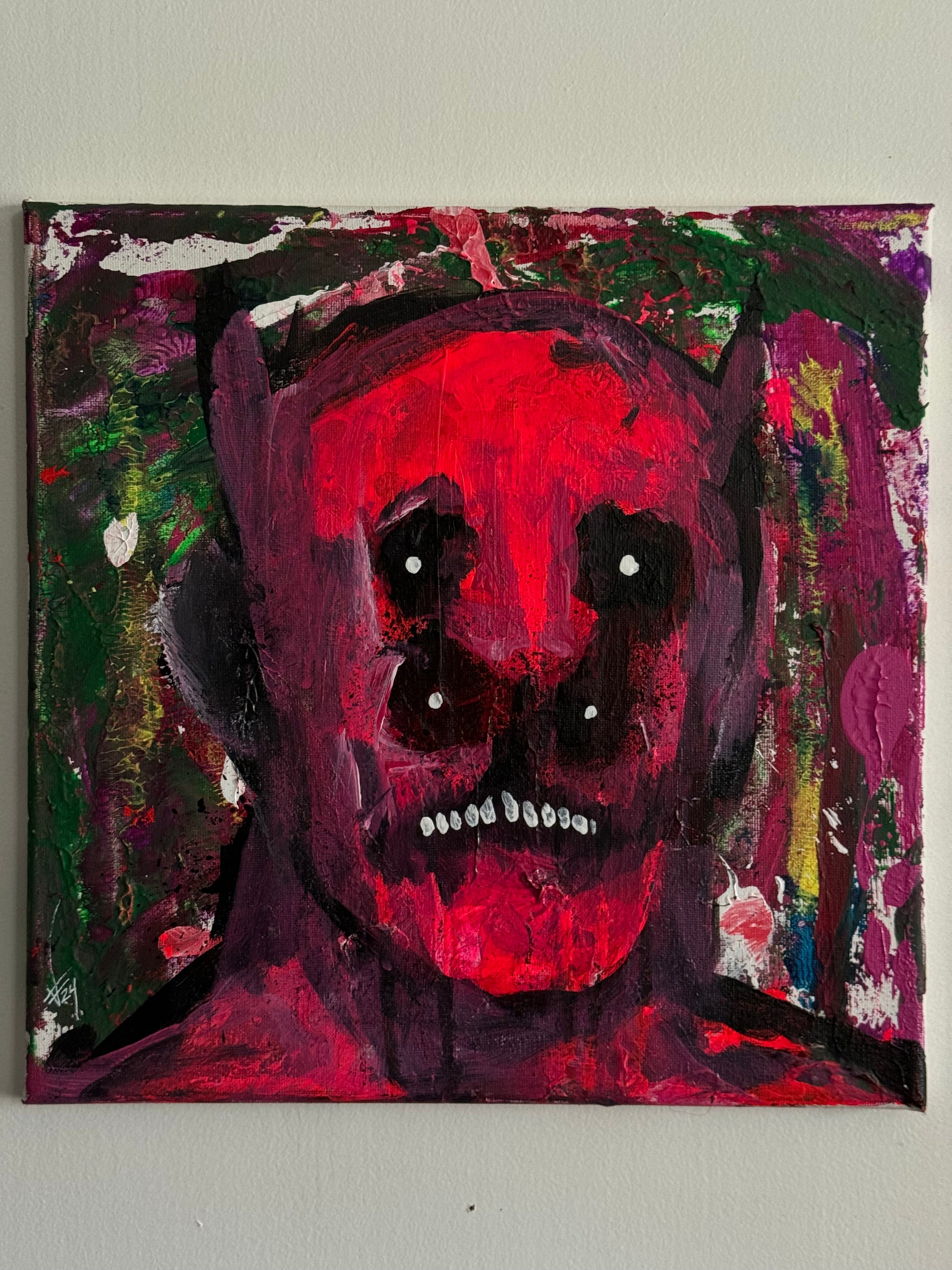 An original piece about people who can't hide their true selves, acrylic on 12x12 canvas.
