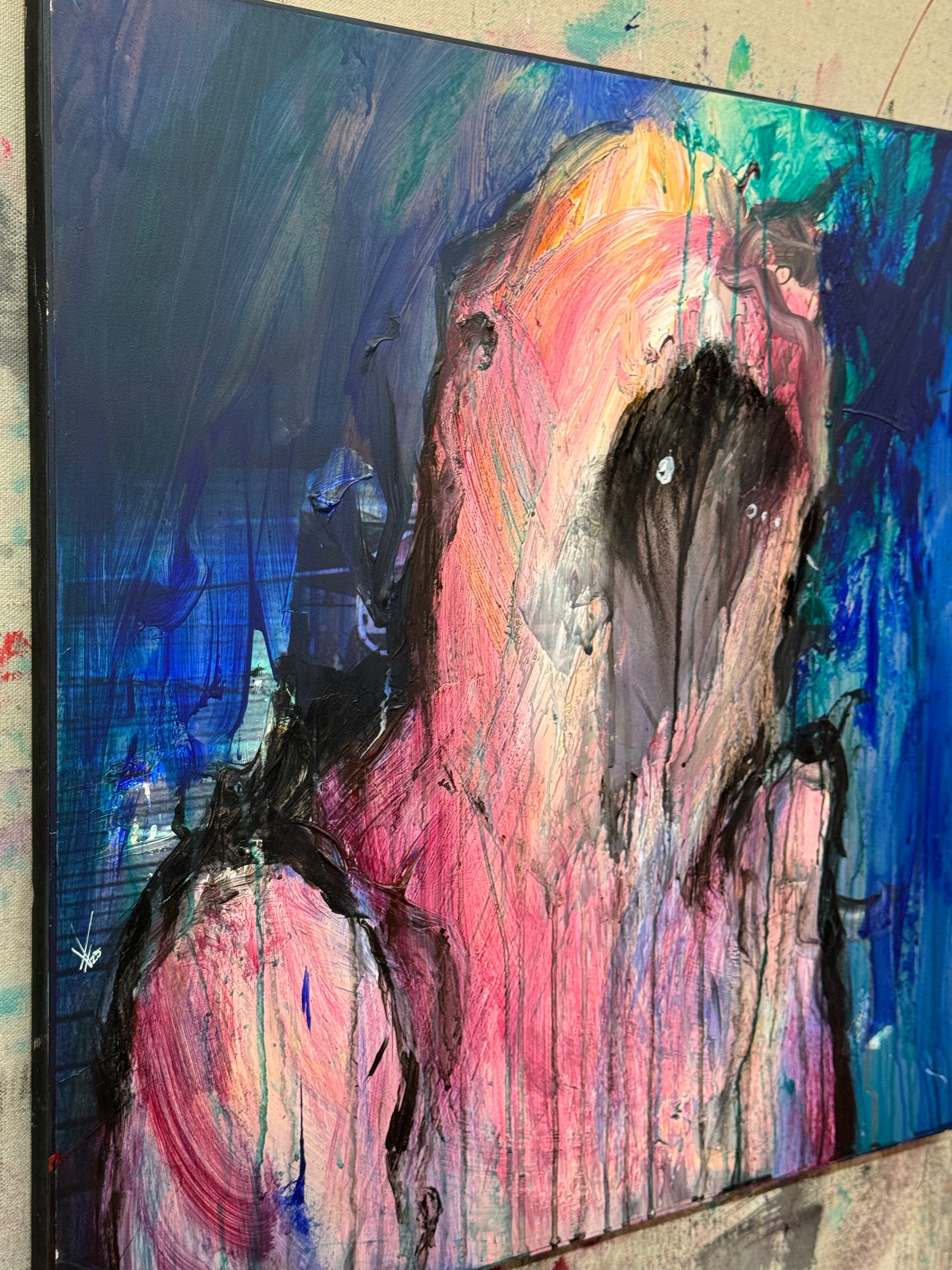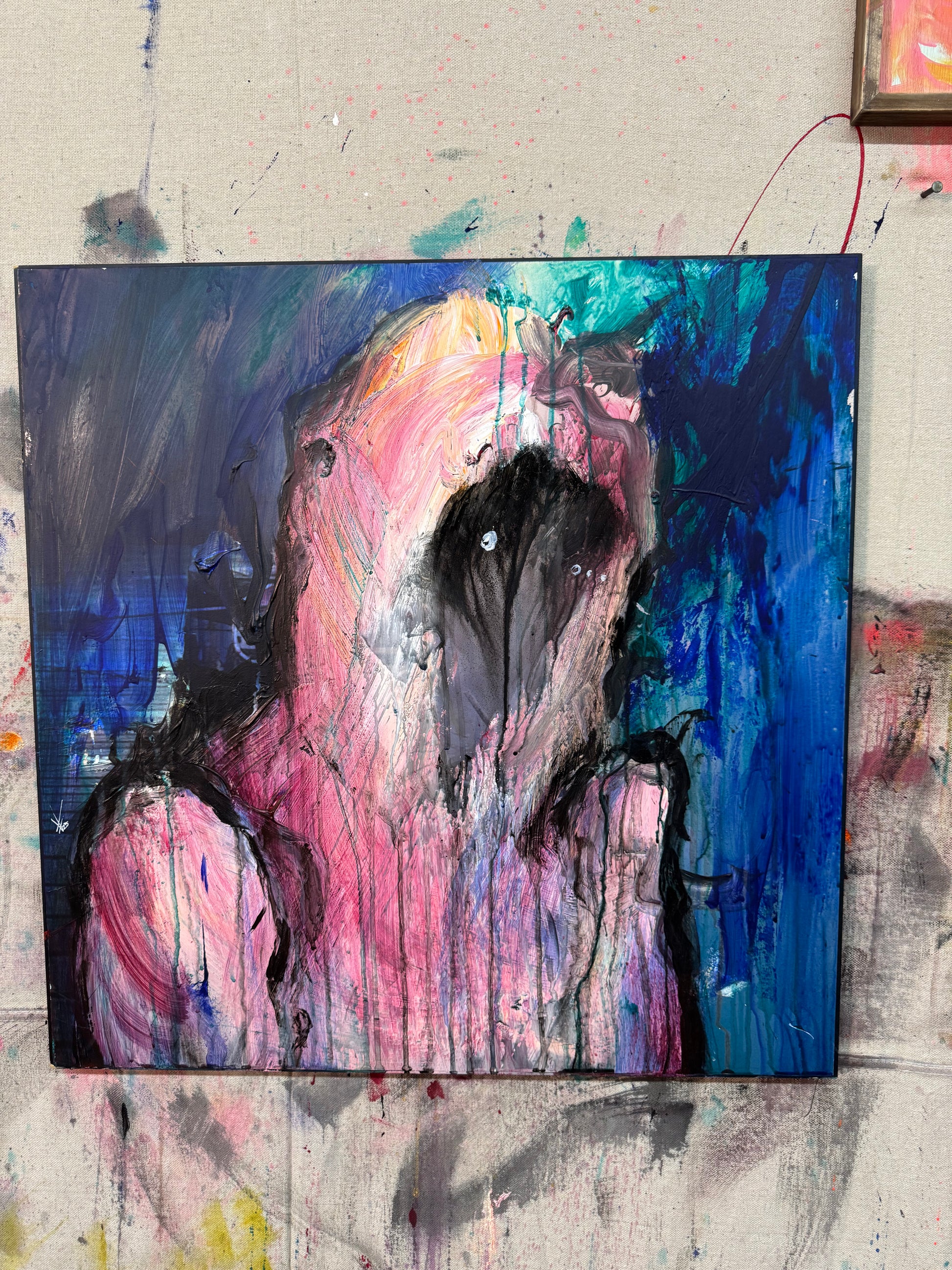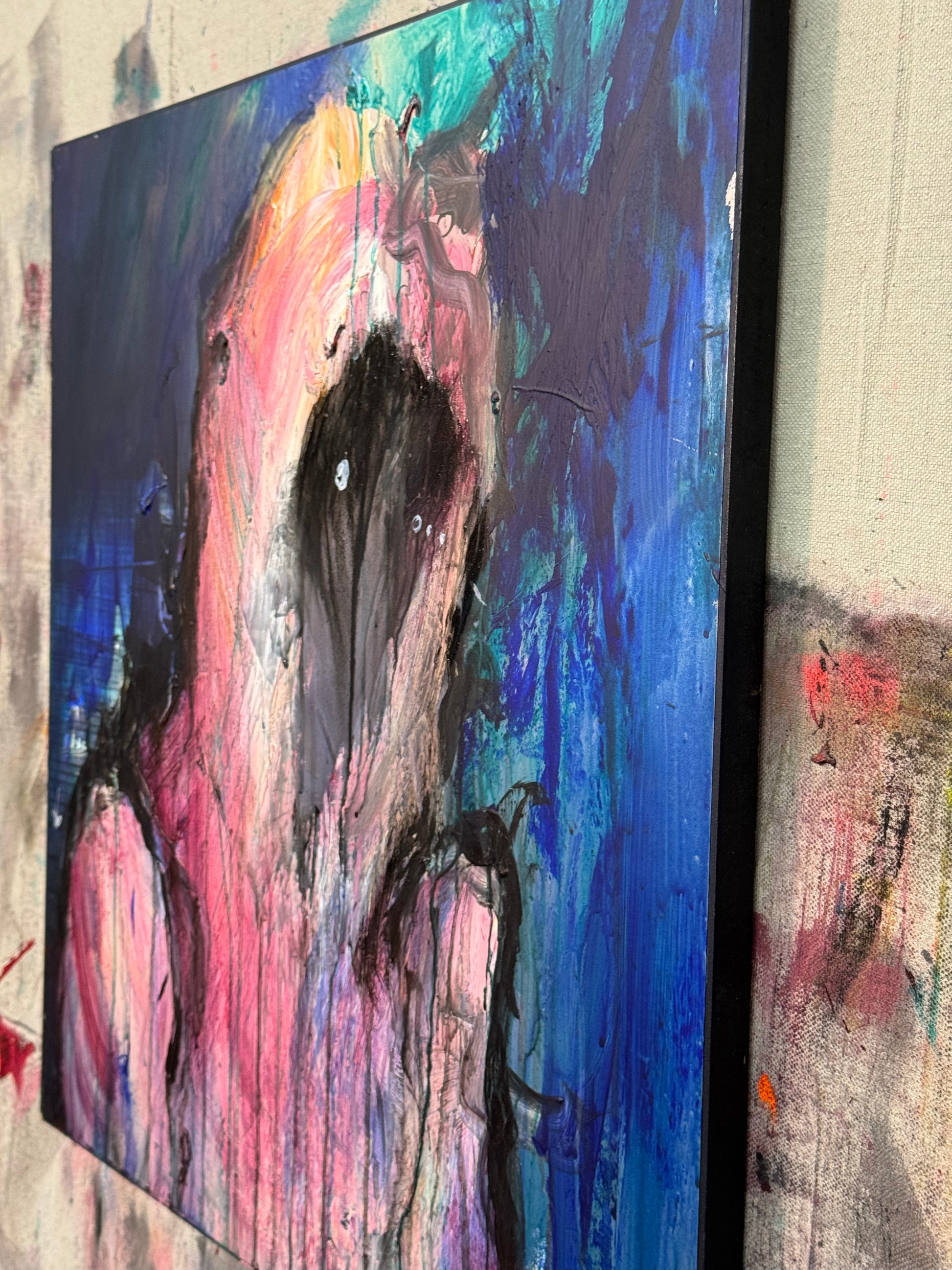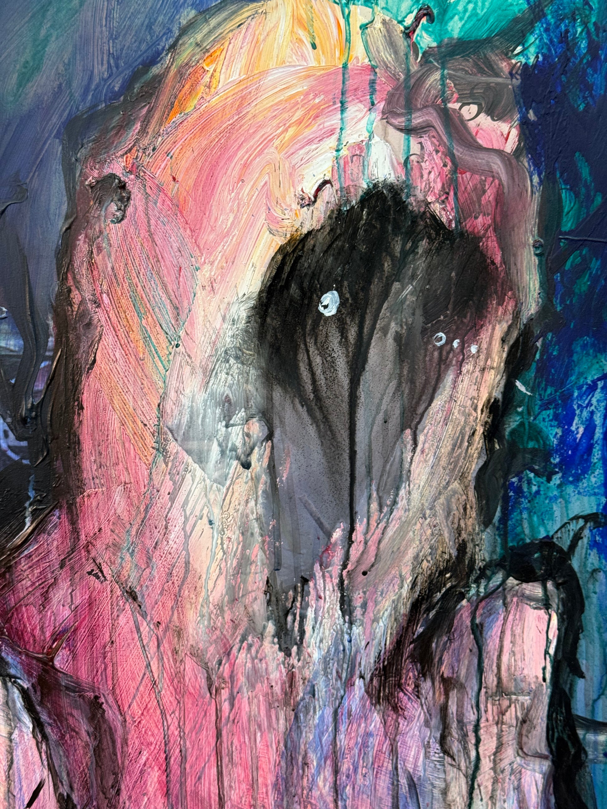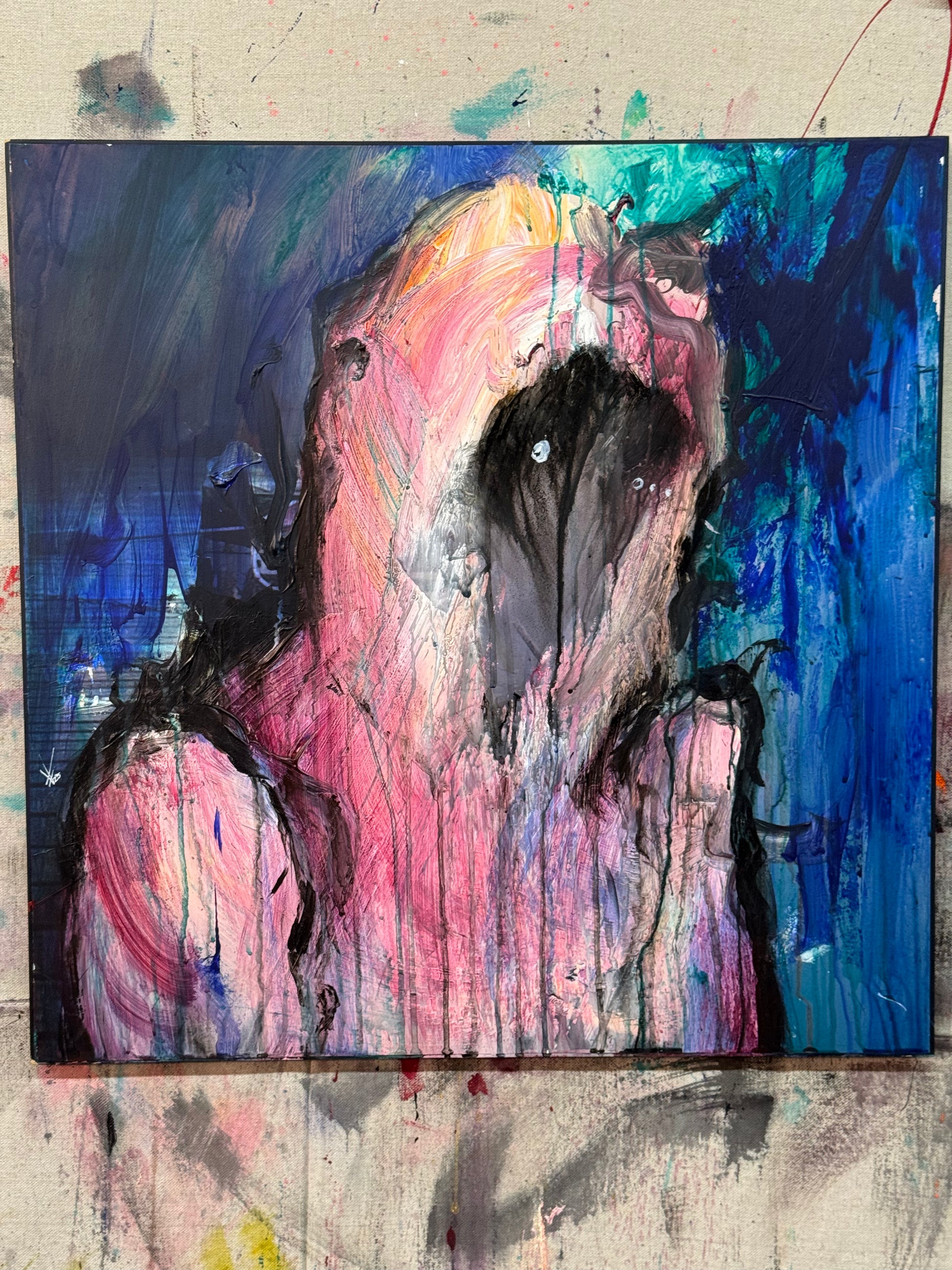 This is about letting sadness consume you, acrylic on 24x24 piece of wood.