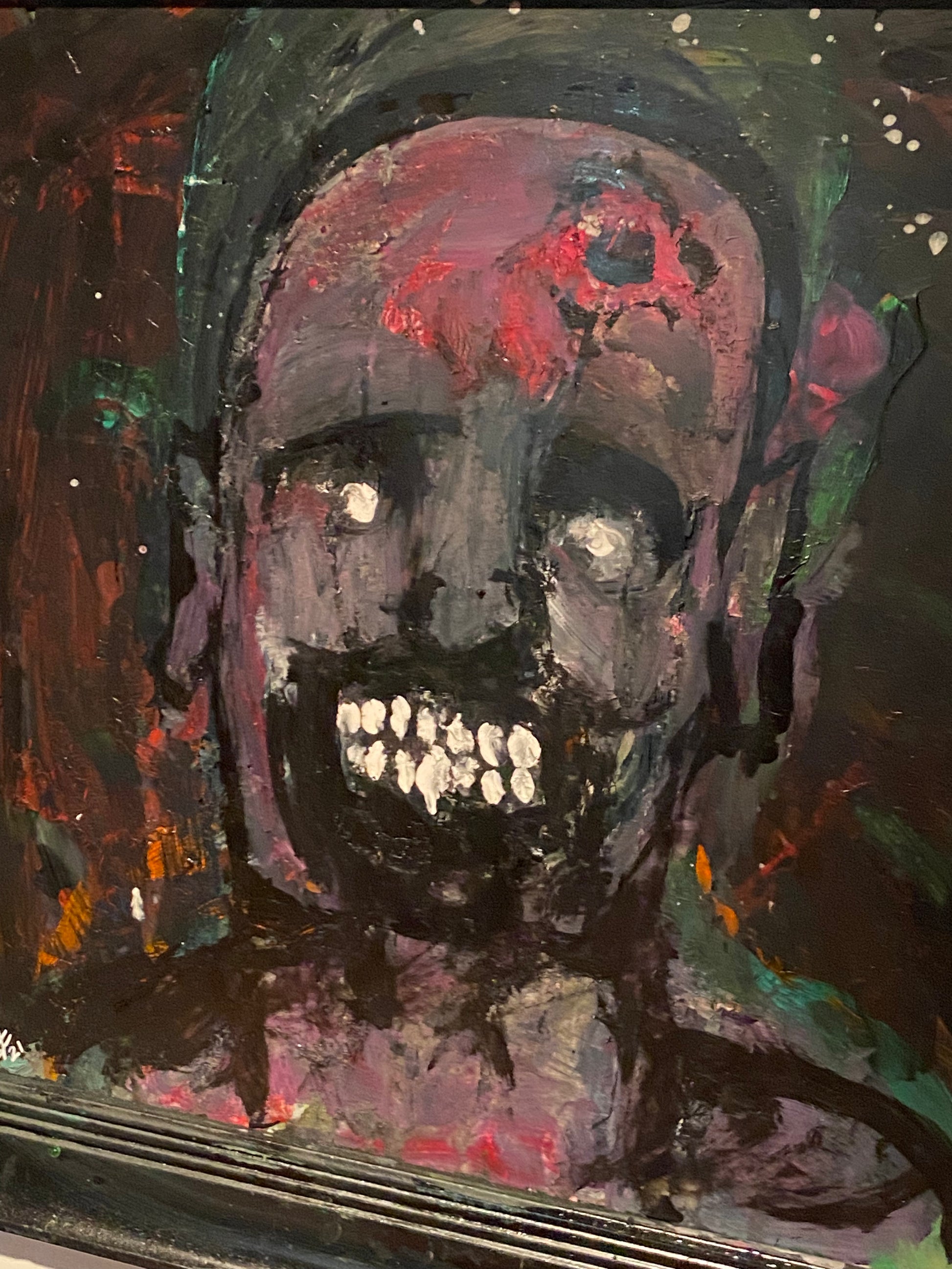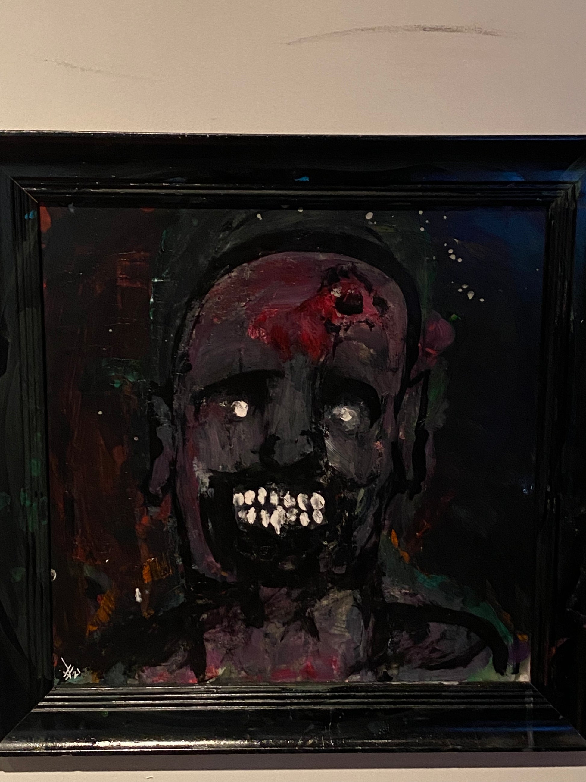 This is an original acrylic painting of a faceless ghoul on an piece of glass, You can find more of my work here.