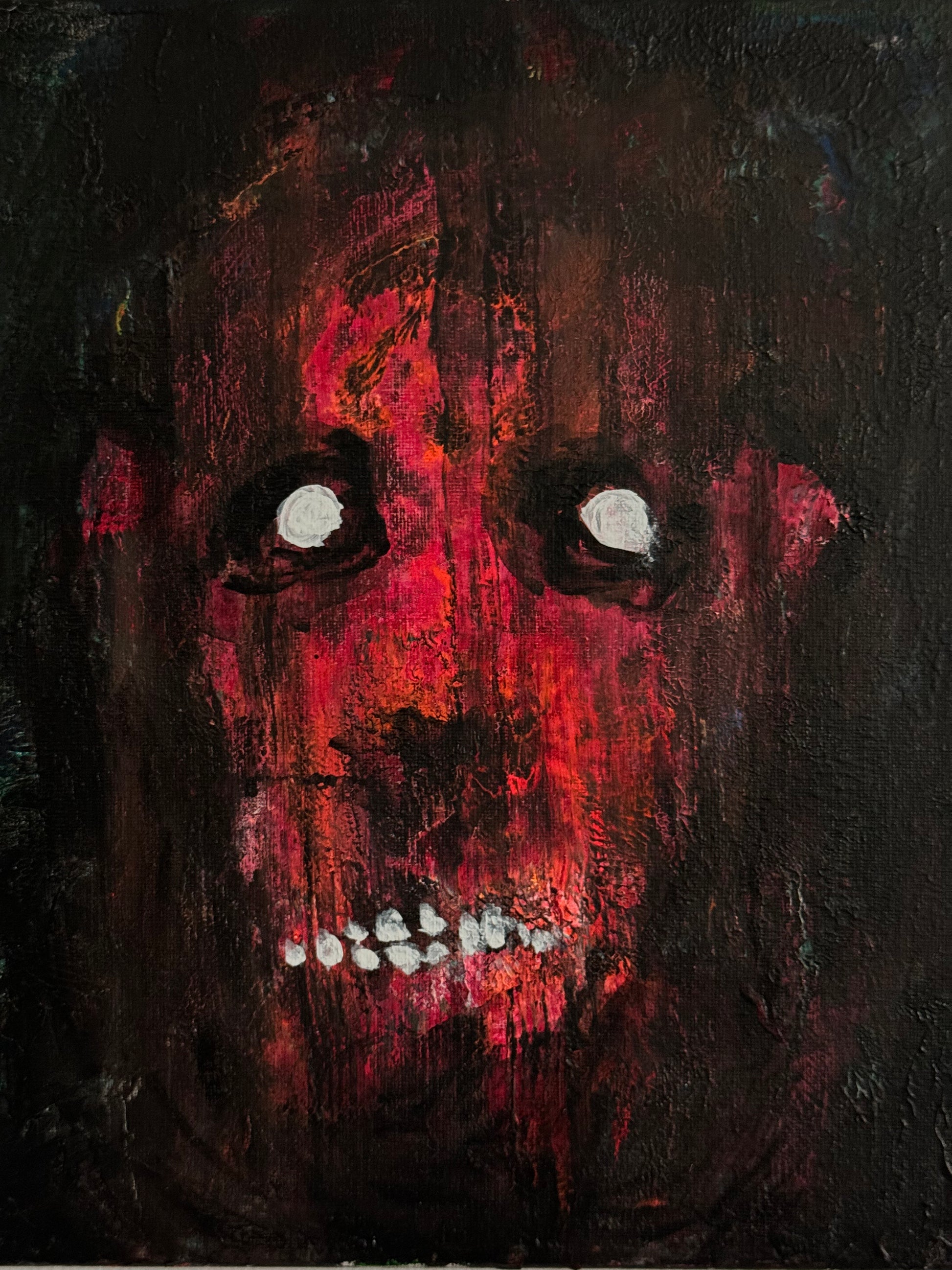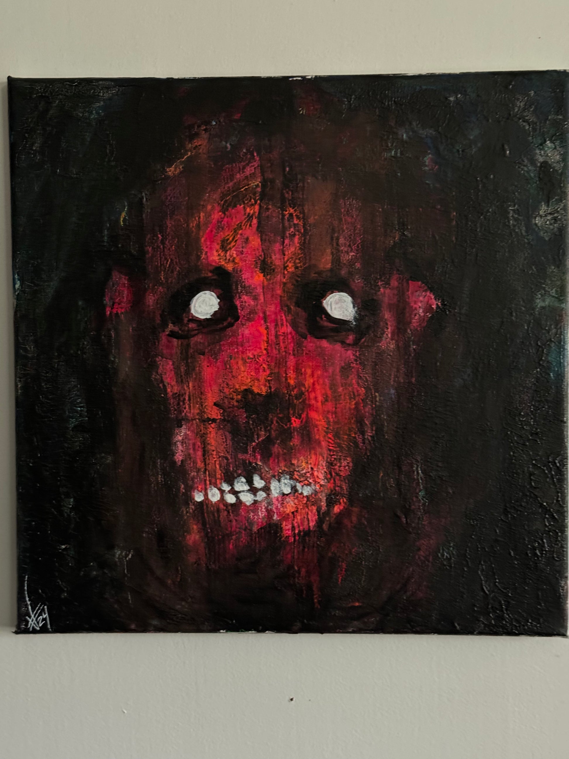 An original piece about people that suck, they always seem to creep out of the shadows, acrylic on 12x12 canvas.
