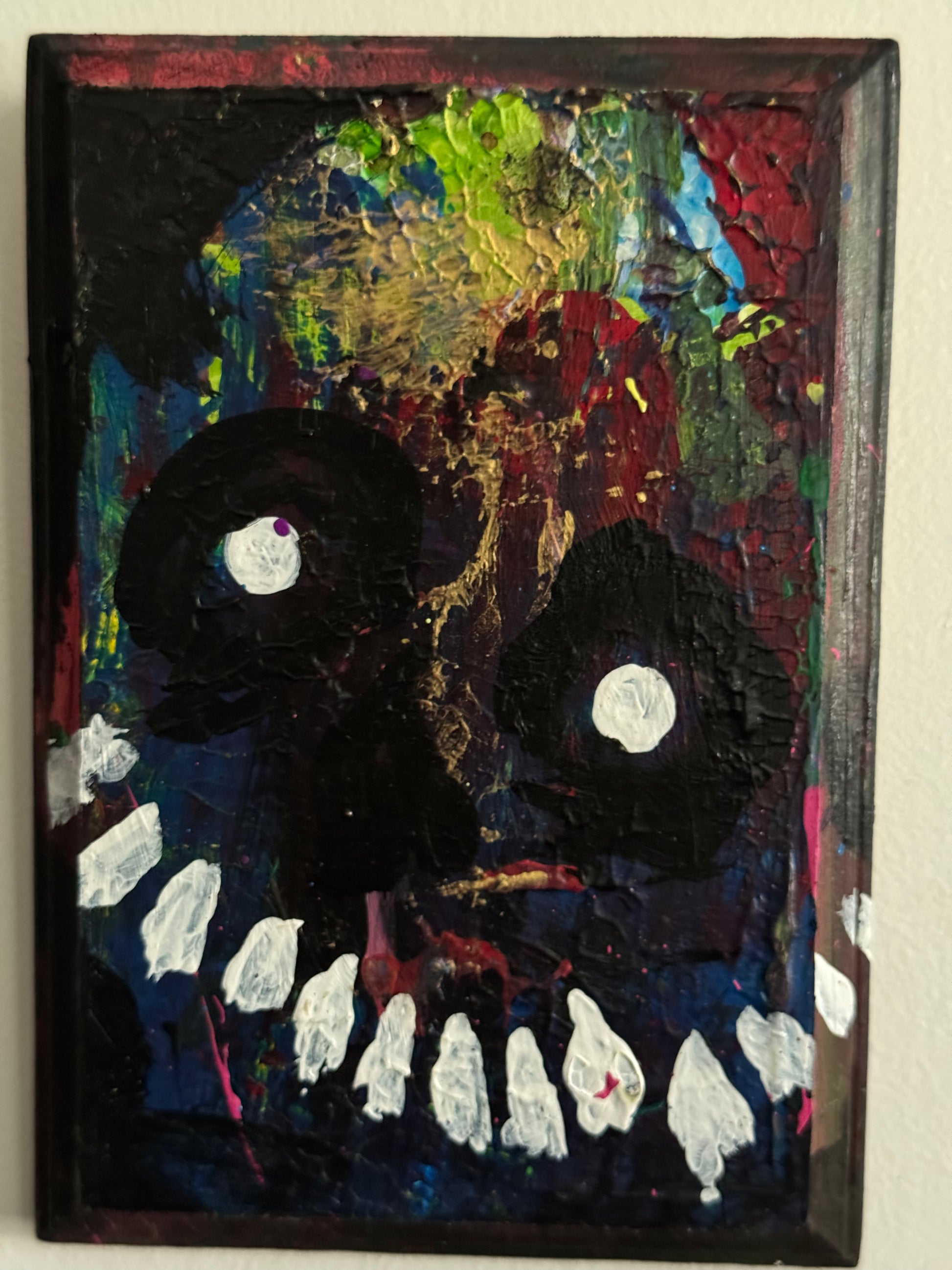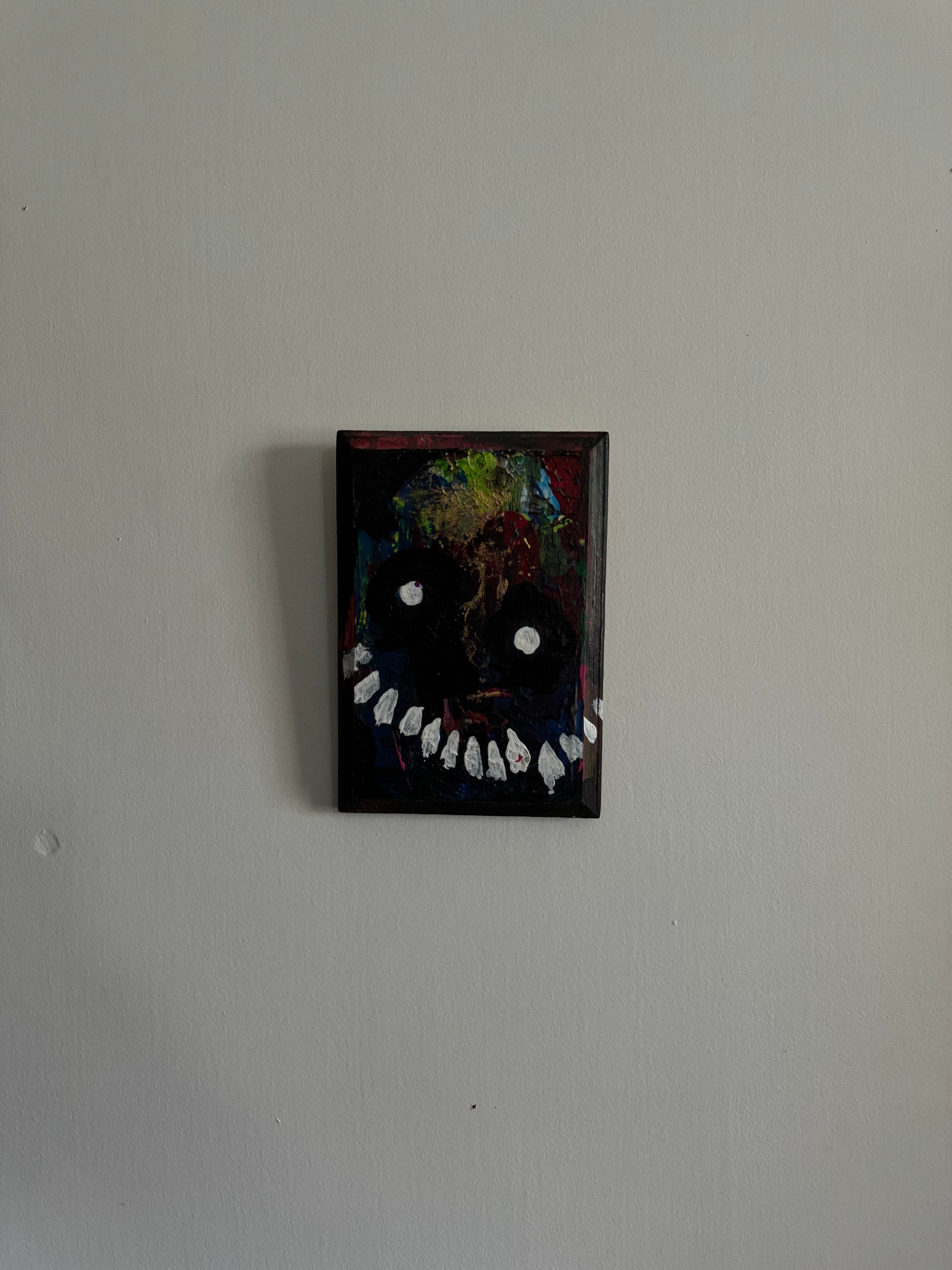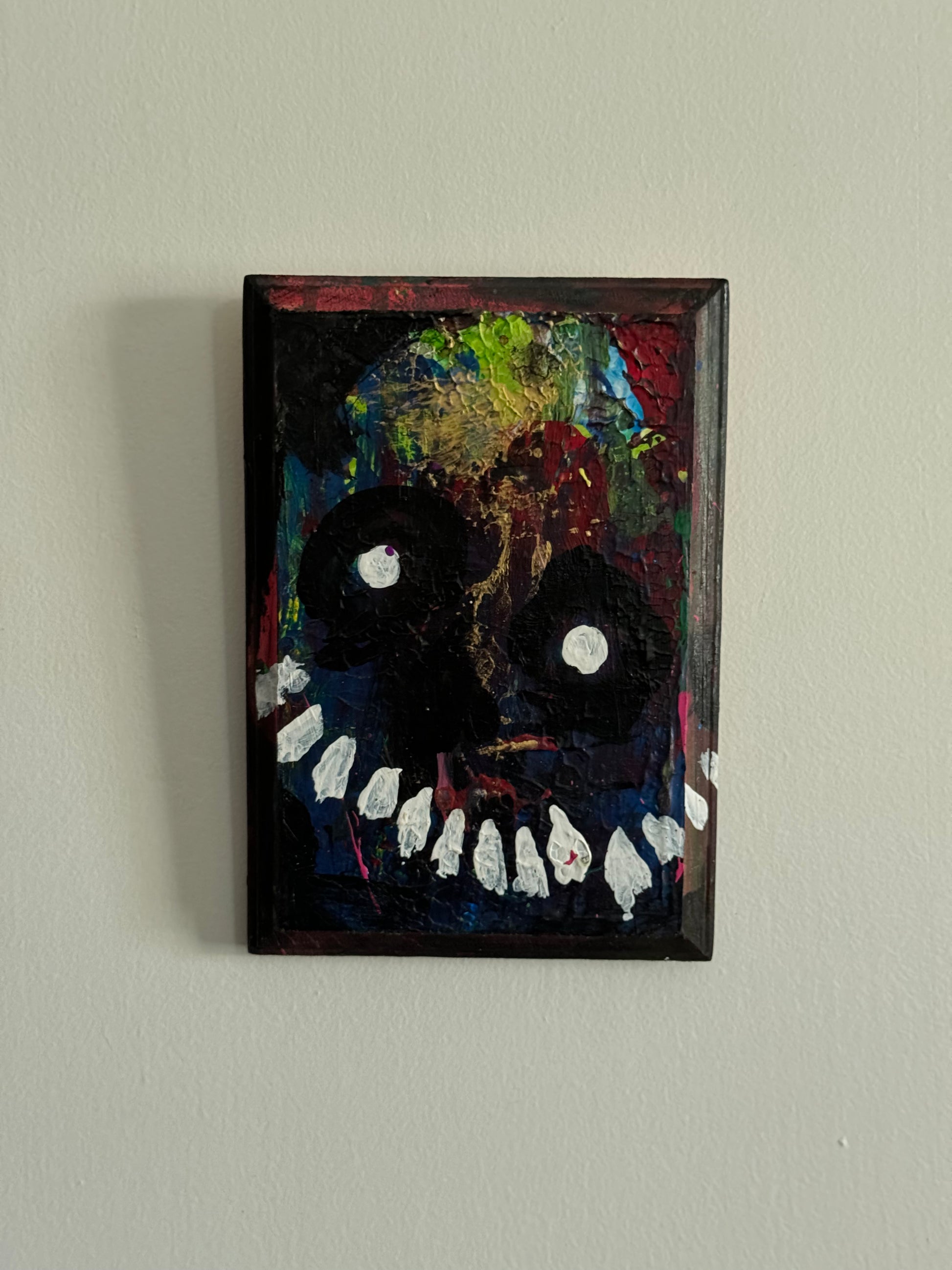 An original painting about those anonymous faces on the internet, acrylic on roughly 5x7 piece of wood.